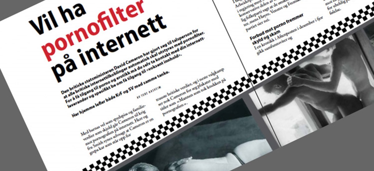Den britiske statsministeren David Cameron har gjort seg til talsperson for at alle britiske internettilkoblinger automatisk skal utstyres med pornofilter. For å få tilgang til porno og erotikk må du selv ta kontakt med din internettleverandør og spesifikt be om få tilgang til «voksent innhold».